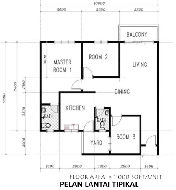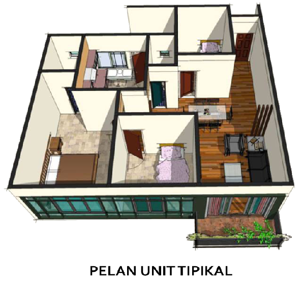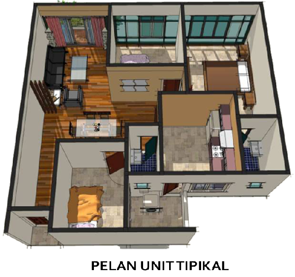 Bilik tidur utama – 168 kaki persegi dan boleh memuatkan 1 unit set perabot tidur iaitu katil kelamin, almari baju, meja solek dan rak lampu tidur. Bilik ini bercantum dengan bilik air.