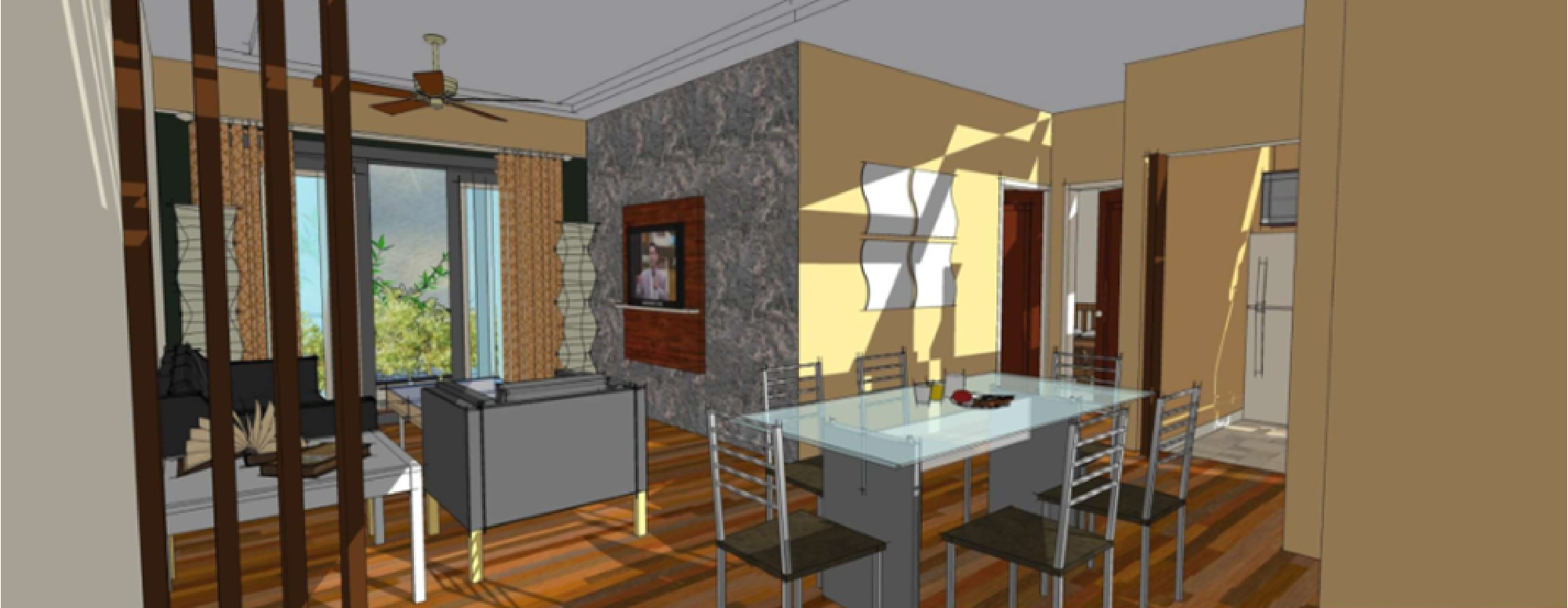 Ruang yang disediakan berukuran 154 kaki persegi, amat bersesuaian dan boleh memuatkan 1 set sofa, rak tv dan perabot perhiasan bersaiz sederhana.